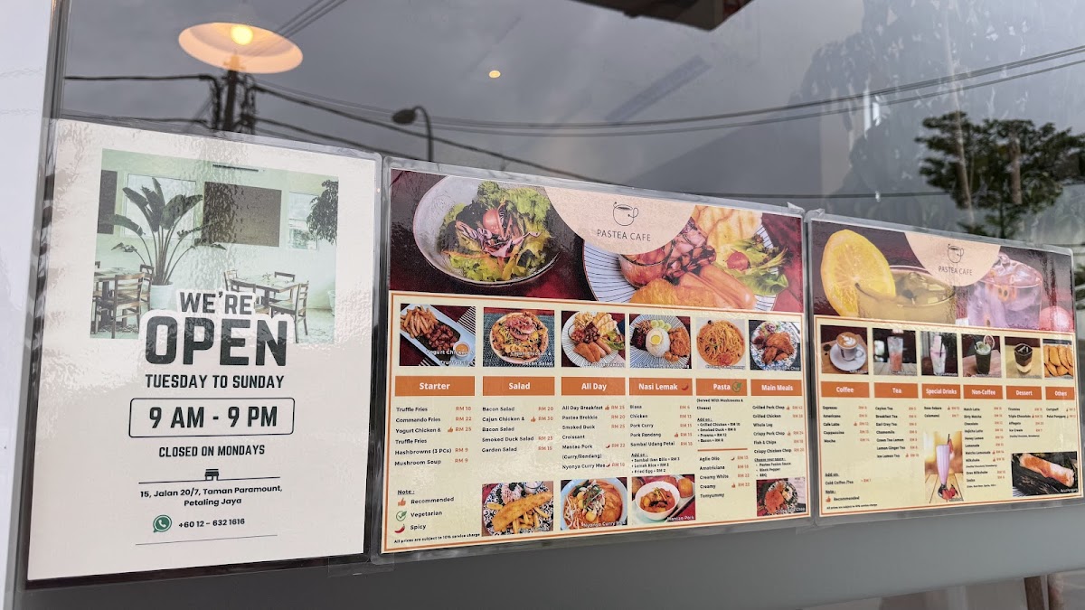 This menu structure supports different dining occasions, from breakfast options to snacks and coffee breaks, making it suitable for both quick orders and casual sit-down meals.